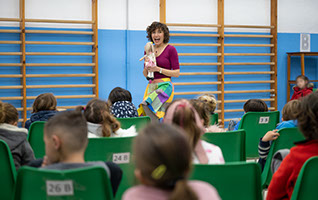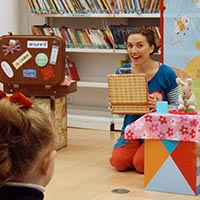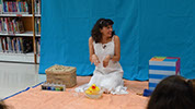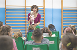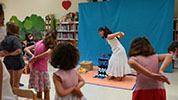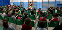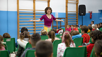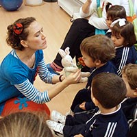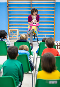 Los niños y las niñas participan en determinados momentos emitiendo sonidos, haciendo movimientos, tocando, oliendo o reconociendo a los personajes del cuento.