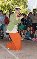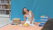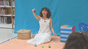 Esther Yamuza es una viajera contadora de historias. Recorre el mundo en su bicicleta contando cuentos sobre dos ruedas, gracias a su teatrillo japonés butai. Esta caja misteriosa que se pliega y despliega, guarda en su interior cuentos y fábulas con mucho encanto, donde el único límite es tu imaginación...